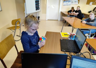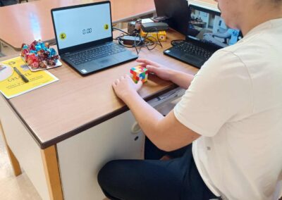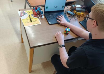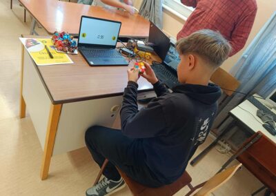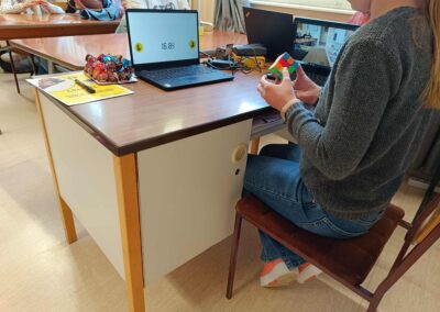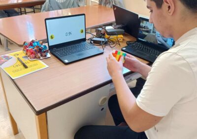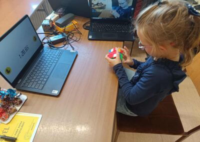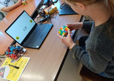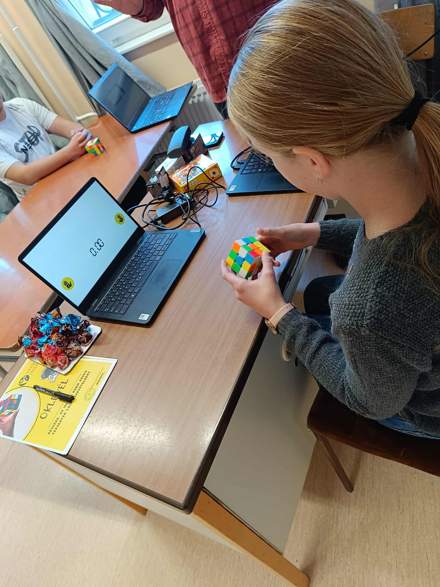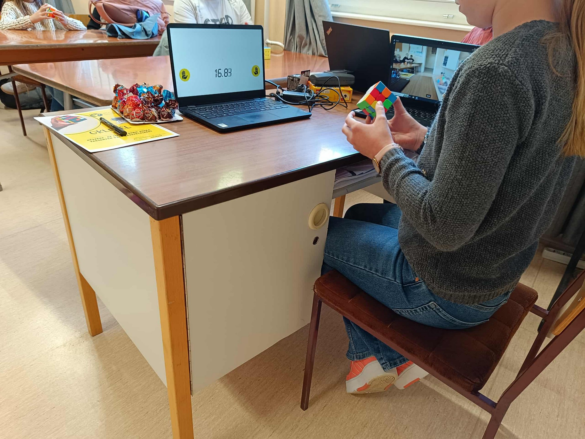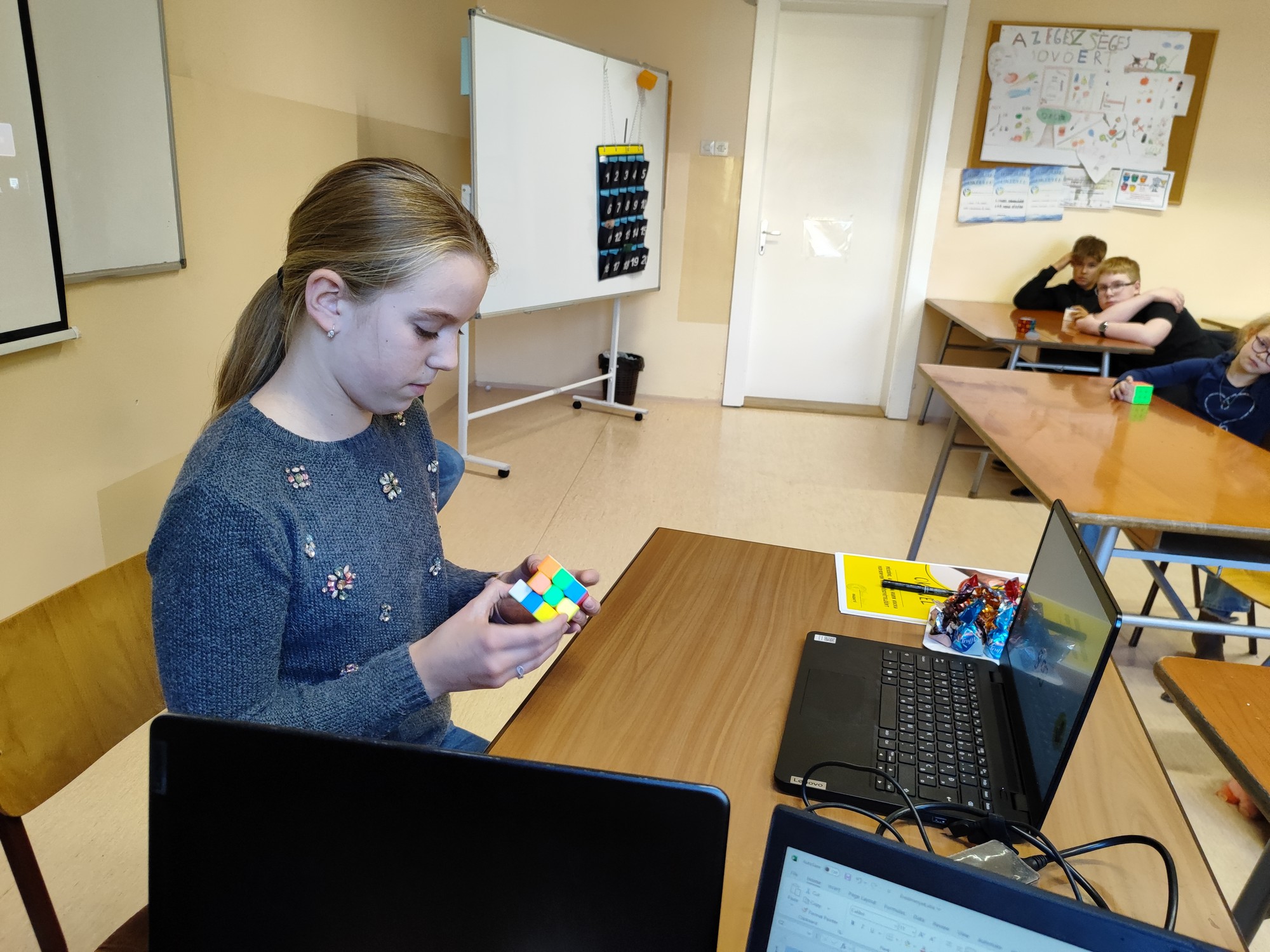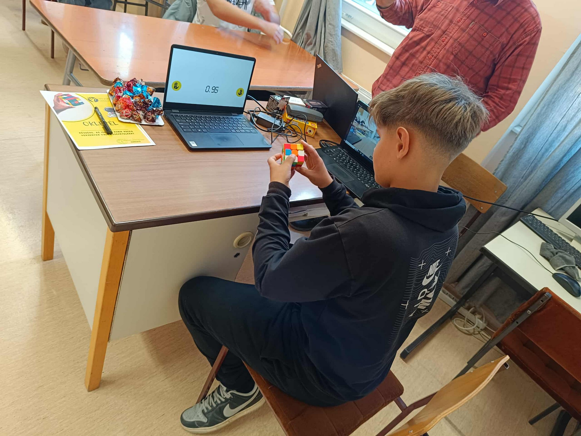 Iskolánkban izgalmas Rubik-kocka kirakó versenyt rendeztünk, ahol diákjaink ügyességüket és gyorsaságukat mérhették össze. A verseny jó hangulatban zajlott, a résztvevők lelkesen és koncentráltan dolgoztak a színes kockák kirakásán. A leggyorsabb kirakásokat taps mellett értékes ajándékok is várták. A rendezvény nemcsak szórakoztató volt, hanem fejlesztette a logikai gondolkodást és a problémamegoldó képességet is. Reméljük, hogy jövőre még több lelkes versenyzővel találkozunk!